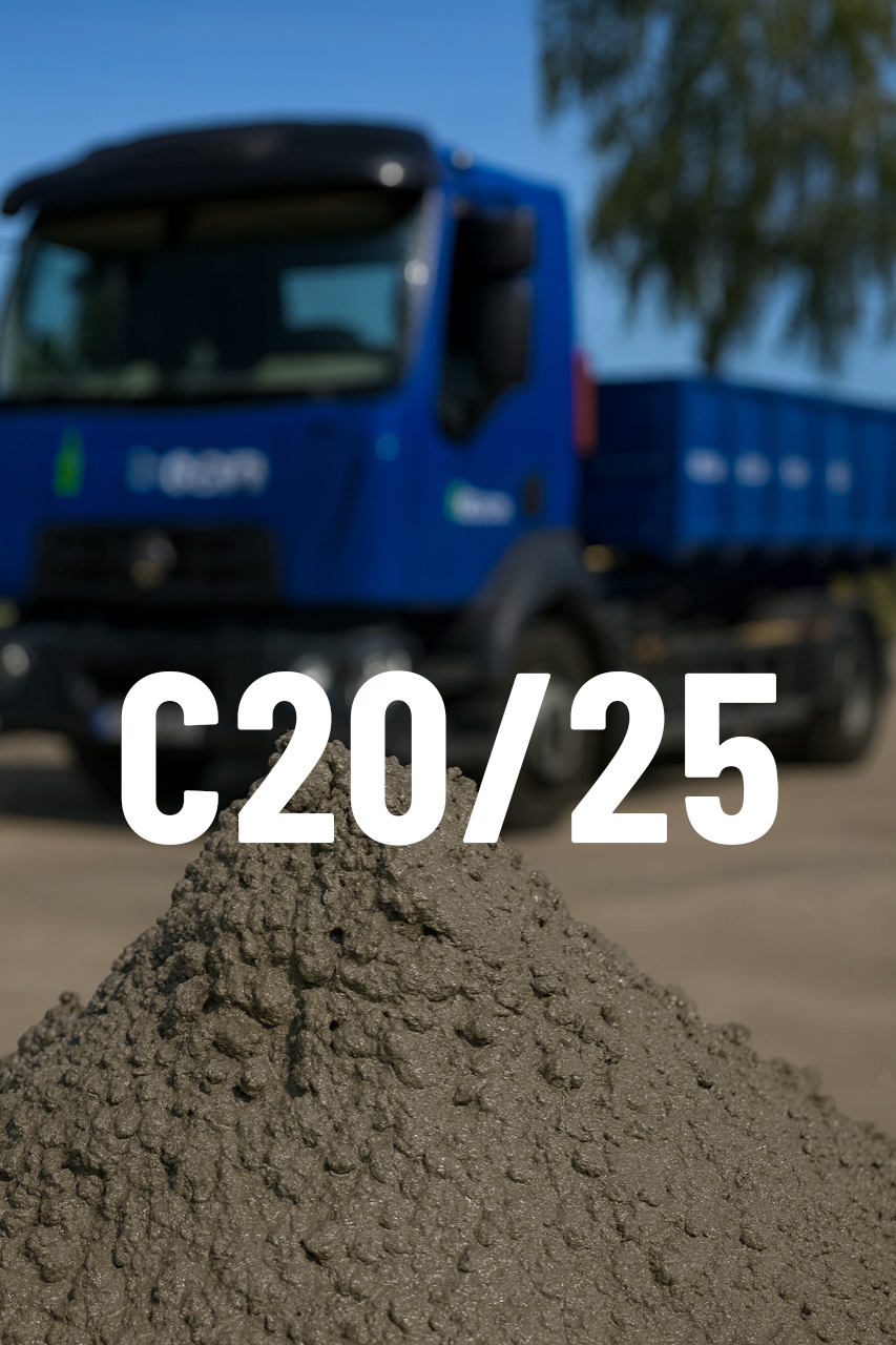 Zavlhlá směs C20/25 představuje pevný, polosuchý beton vhodný pro konstrukce, které vyžadují vysokou odolnost a možnost kvalitního hutnění. Spadá do třídy prostředí XC1-2, což znamená, že je určena do mírně vlhkého vnitřního prostředí nebo chráněného exteriéru, kde může docházet ke karbonataci betonu, ale nejsou přítomny agresivní chemické vlivy.