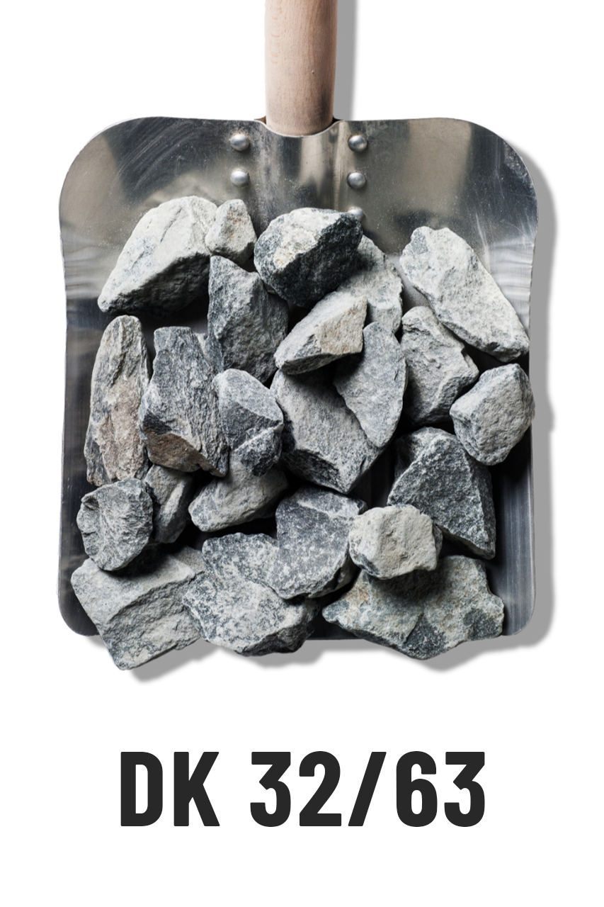 Drcené kamenivo 32/63 je hrubá frakce kameniva s velikostí zrn 32–63 mm. Používá se zejména pro drenážní a stabilizační vrstvy, zásypy staveb, podkladní vrstvy komunikací nebo pro zpevnění ploch. Díky velkým zrnům zajišťuje výbornou propustnost vody a vysokou únosnost konstrukční vrstvy.